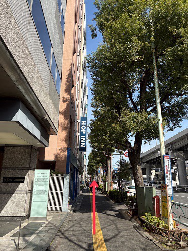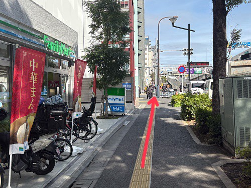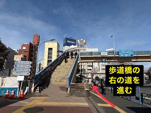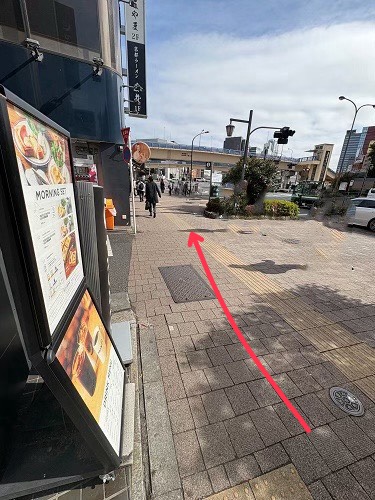 1. 東口改札を出たら左方向(歩道橋が見える方)に進みます。