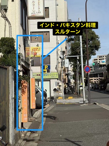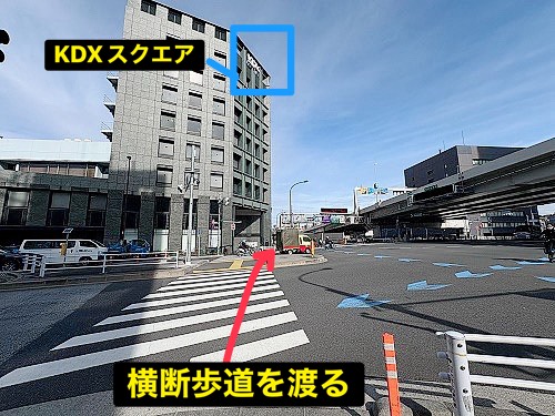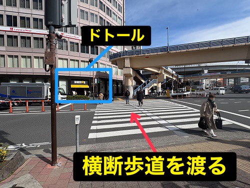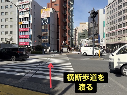 3. まっすぐ歩いた先にある横断歩道を渡ります。
